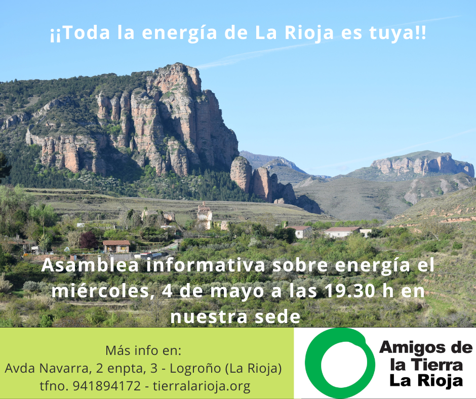 Esta actividad está destinada a cualquier persona, independientemente si es socia o no de Amigos de la Tierra La Rioja, que quiera trabajar para constituir alternativas energéticas frente a las propuestas actuales.
