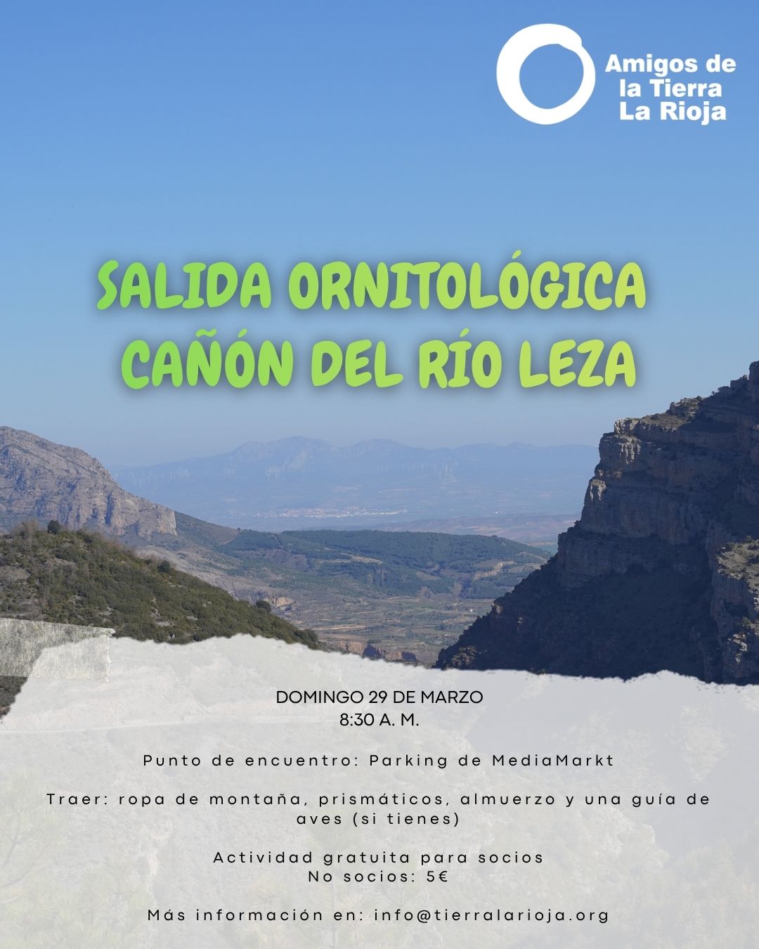 salida ornitológica: Cañón del río Leza5,00 € salida ornitológica: Cañón del río Leza cantidad Añadir al carrito Categoría: Sin categorizar Valoraciones (0) Valoraciones No hay valoraciones aún. Sé el primero en valorar “salida ornitológica: Cañón del río Leza” Cancelar la respuestaDebes acceder para publicar una valoración. Productos relacionados Sin categorizarExcursión: San Tirso 5,00 € Añadir al carrito Sin categorizardonativo 5,00 € - 50,00 €Rango de precios: desde 5,00 € hasta 50,00 € Seleccionar opciones Este producto tiene múltiples variantes. Las opciones se pueden elegir en la página de producto Sin categorizarSalida ornitológica: Sajazarra 5,00 € Añadir al carrito