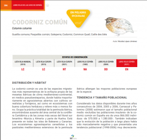 Esta especie aparece en Peligro en el libro Rojo de las Aves de España 2021 sin embargo la